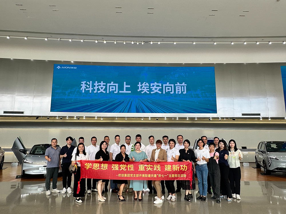 为深入开展学习贯彻习近平新时代中国特色社会主义思想主题教育,重走习近平总书记考察广汽埃安的路线,重温习近平总书记视察广东、广州重要讲话、重要指示精神,2023年7月21日,欢创集团党支部与洛浦街新联会、洛浦街商会以及两新企业党支部赴广汽埃安新能源汽车股份有限公司开展“学思想、强党性、重实践、建新功”联建共建主题党日活动。欢创集团党支部入党积极分子、欢创大学校长陈淼代表集团支部出席参加。
