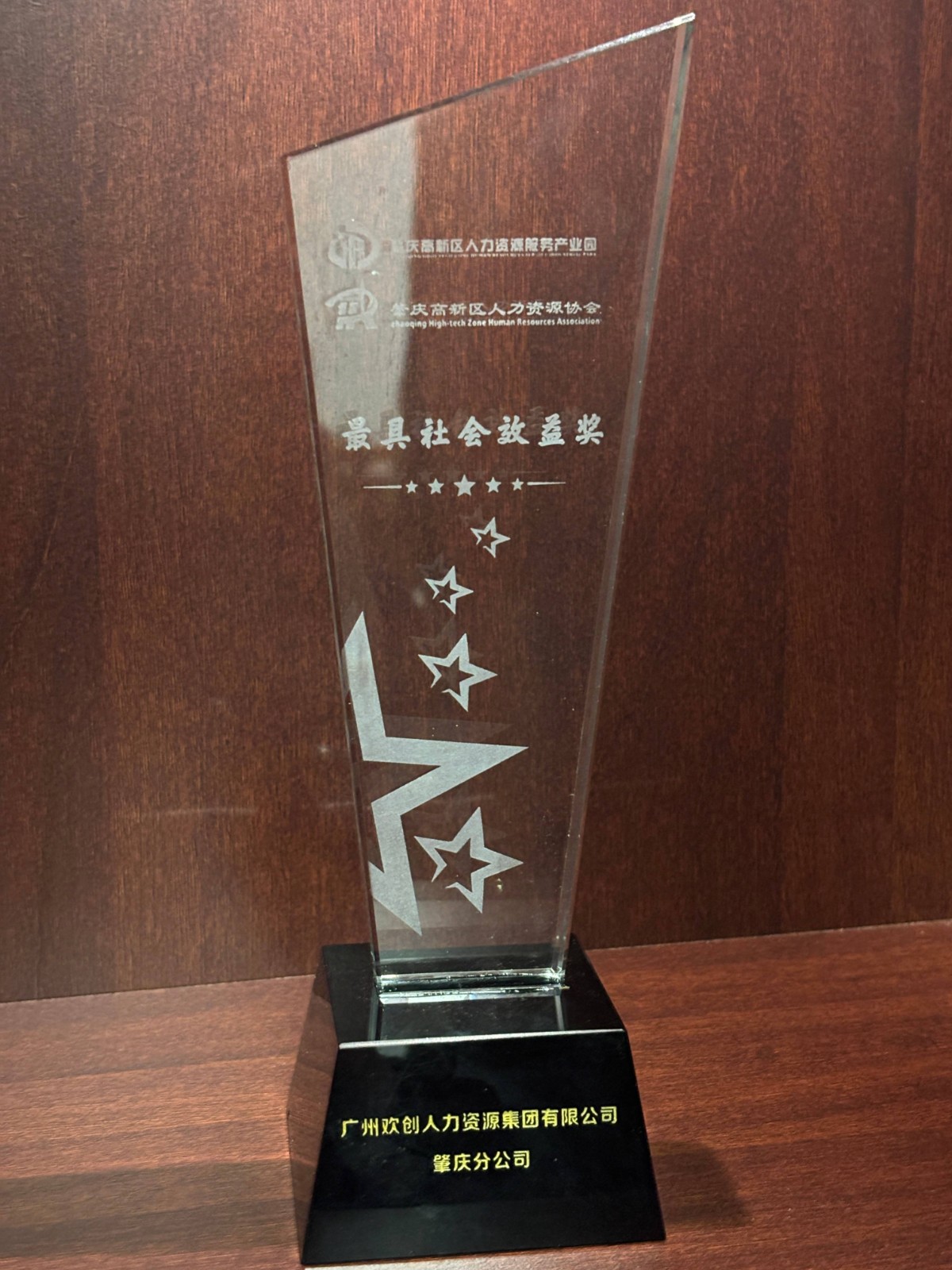为打造行业标杆,激发行业活力,肇庆高新区人力资源服务产业园与肇庆高新区人力资源协会开展年度先进企业评选活动。欢创肇庆公司凭借卓越的人力资源管理及人才招聘成果,以及高效的协作能力,在众多企业中脱颖而出,荣获“卓越贡献奖”“最具社会效益奖”以及“最佳协作奖”三项荣誉。