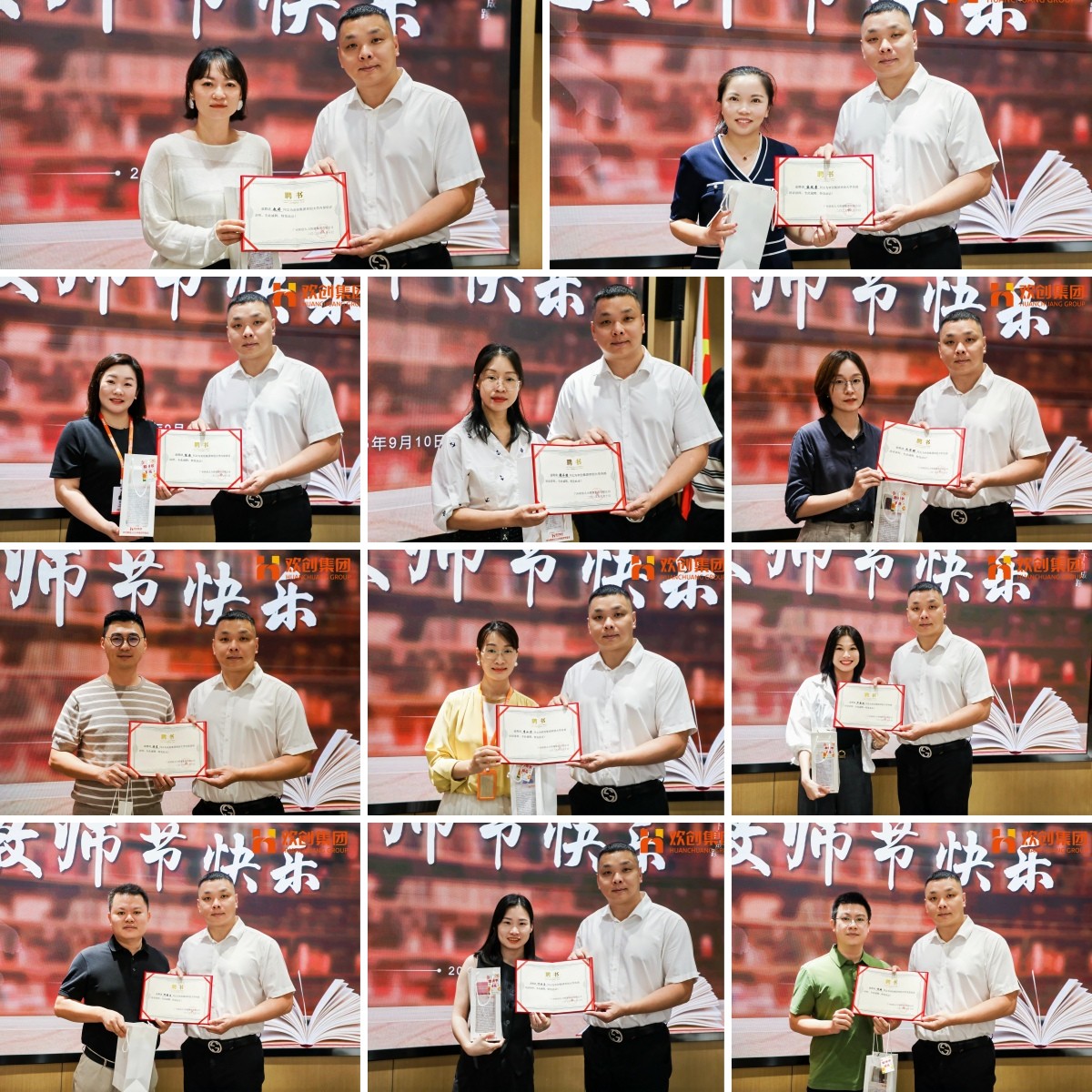 欢创集团党支部书记、总裁陈文舒女士,总裁郭志鹏先生,通过视频送来祝福,衷心感谢讲师们的无私奉献,祝福欢创的“引路人”和“点亮者”教师节快乐,工作顺利,家庭幸福。